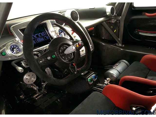 Like the Zonda R's exterior, the interior is focused on racing. What sits in front of you in the Zonda R is a large LCD screen rather than typical gauges that displays all sorts of information such as the amount of downforce the Zonda R is producing at any given moment. Using sensors placed throughout the car, you'll be able to monitor every single component.